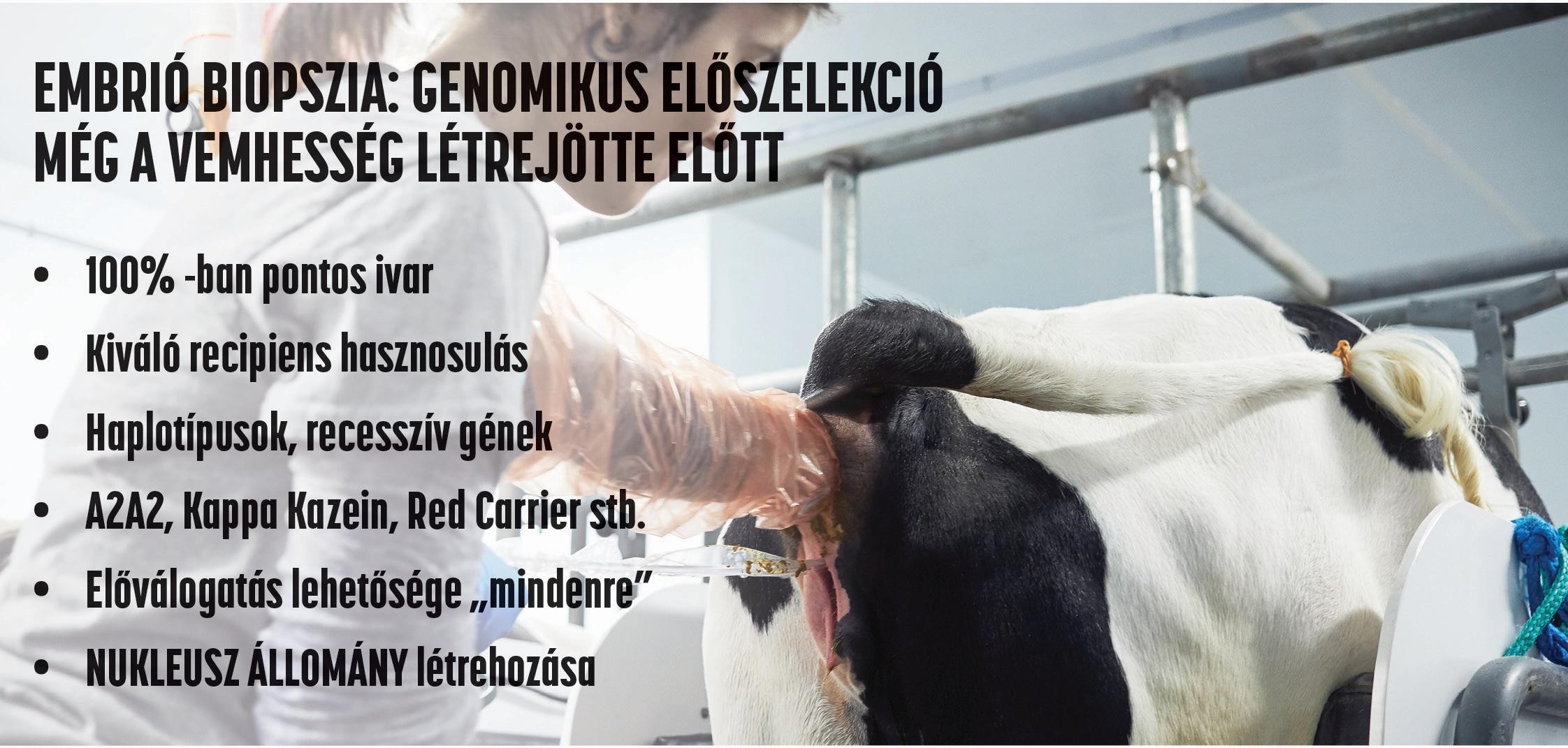 A tejtermelő ágazatot alapjaiban érintő globális kihívások mellett a hazai szereplőknek meg kellett küzdenie az egyik legsúlyosabb a fertőző betegséggel, a ragadós száj- és körömfájással (RSzKF) és az ezzel záró állományfelszámolásokkal. Az állatok leölésével az anyagi veszteség mellett a biológiai alapokat is felfoghatatlan mértékű kár érte. Tenyésztőgenerációk több évtizedes szakmai erőfeszítései váltak egyik pillanatról a másikra semmivé. A fertőzéssel érintett gazdaságok tejtermelése kiesett, jelentős gazdasági veszteségek jelentkeznek, a piaci és a fogyasztói bizalom is megrendül. A helyzet mielőbbi normalizálása, a kiesett állomány újratelepítése, a genetikai színvonal megtartása vagy további javítása sürgető feladat. Az újratelepítés sürgető, de adódik a kérdés, hogy milyen állománnyal? A magas genetikai értékű tenyészállatok (vemhes üsző, szűz üsző) nagy volumenű beszerzése gyakorlati kérdéseket vet fel; van e lehetőség több ezer nőivarú tenyészállat hazai beszerzésére, amellett, hogy biztosítanunk kell az elvárt, magas szintű állategészségügyi státuszt. A szarvasmarha faj hosszú generációs intervallumából (4-5 év) adódóan a gyors genetikai helyreállítást az időigényes hagyományos tenyésztés nem segíti. Emellett nem elhanyagolható a gazdasági kényszer sem, amely a tejtermelés mielőbbi újraindítását követeli meg a szakemberektől. Ilyen szakmai és közgazdasági követelményeket mérlegelve kell a legmegfelelőbb szakmai döntést meghozni, amely minden valószínűség szerint a kiváló tenyészértékű tenyészállatok és embriók együttes beszerzése lesz.