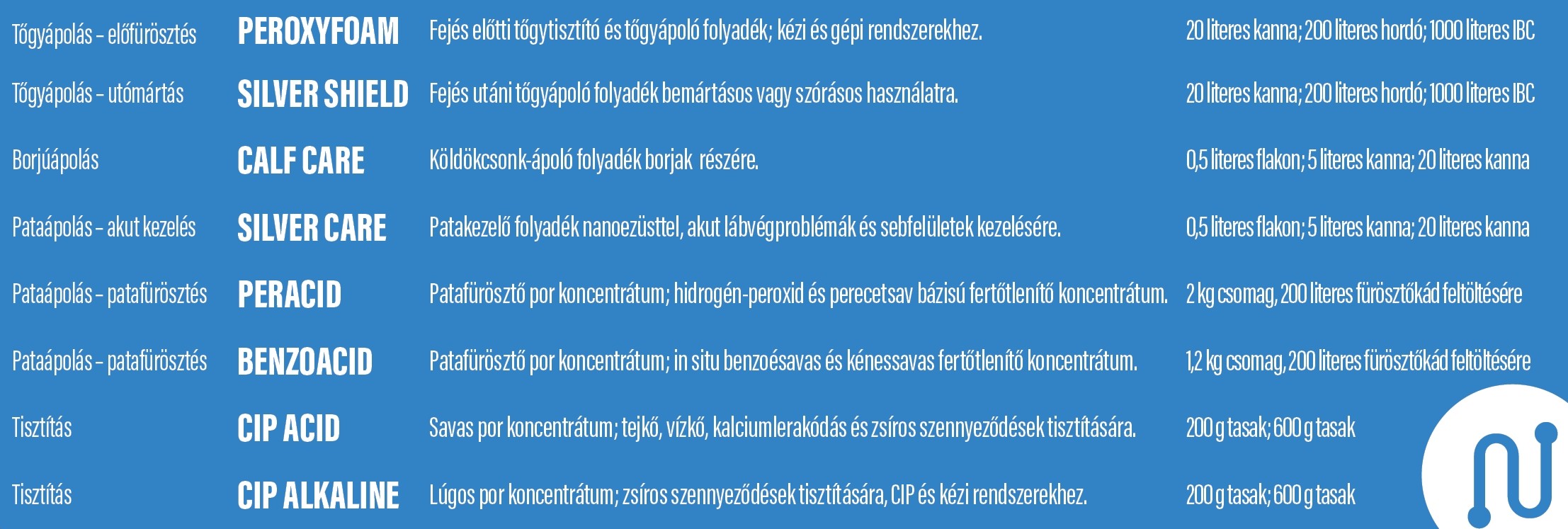 A termékcsalád a higiéniai folyamatokat nemcsak az állatok közvetlen ápolásában, hanem a tisztítási rendszerek területén is támogatja. A CIP Acidsavas por koncentrátum a tejkő, vízkő és zsíros lerakódások eltávolítására kínál megoldást, míg a CIP Alkaline lúgos por koncentrátum az erősebb zsíros szennyeződések tisztítására szolgál.
